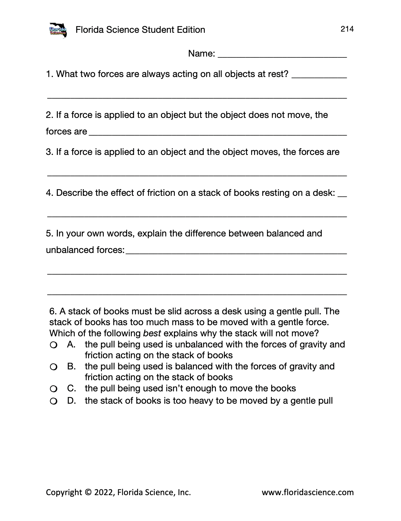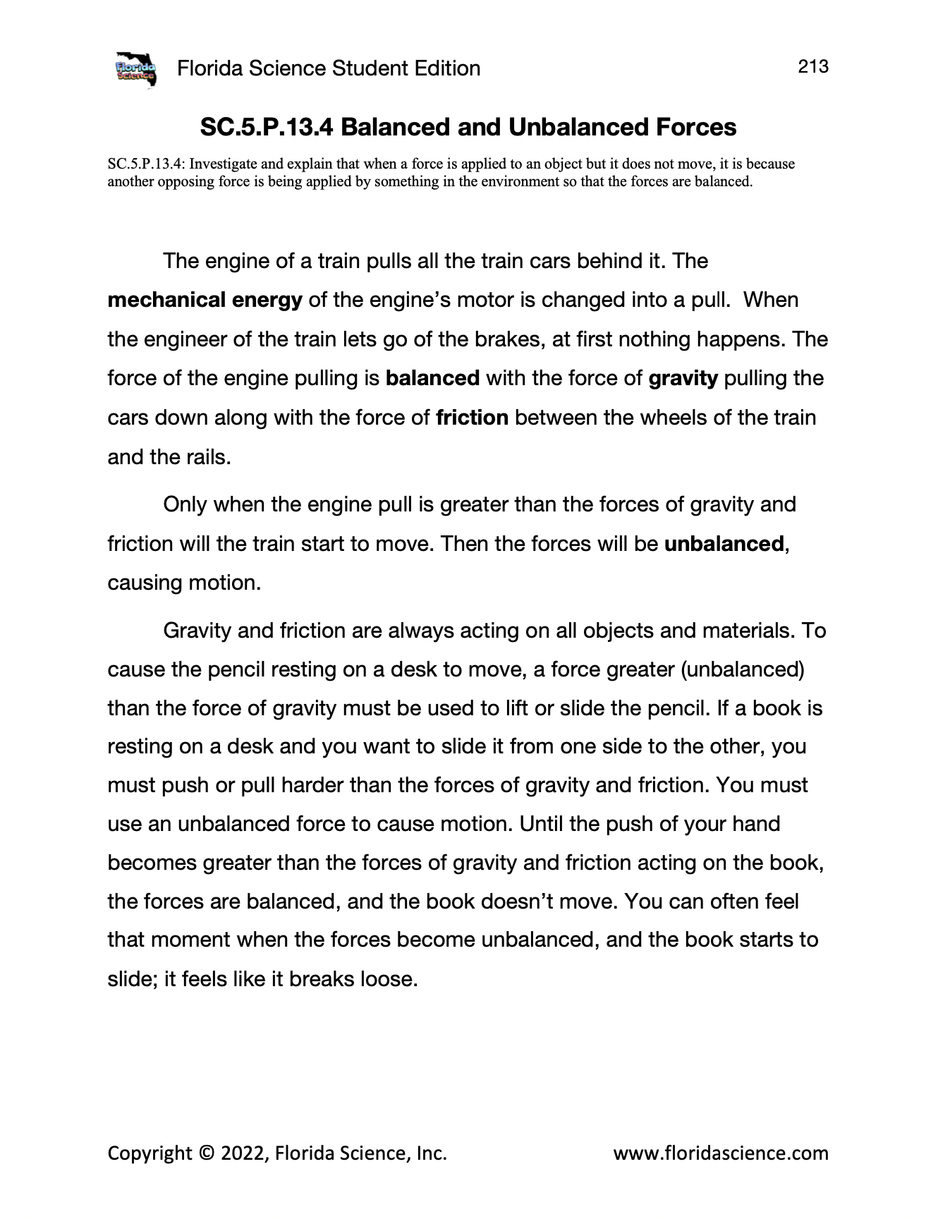 SC.5.P.13.4 Balanced and Unbalanced Forces